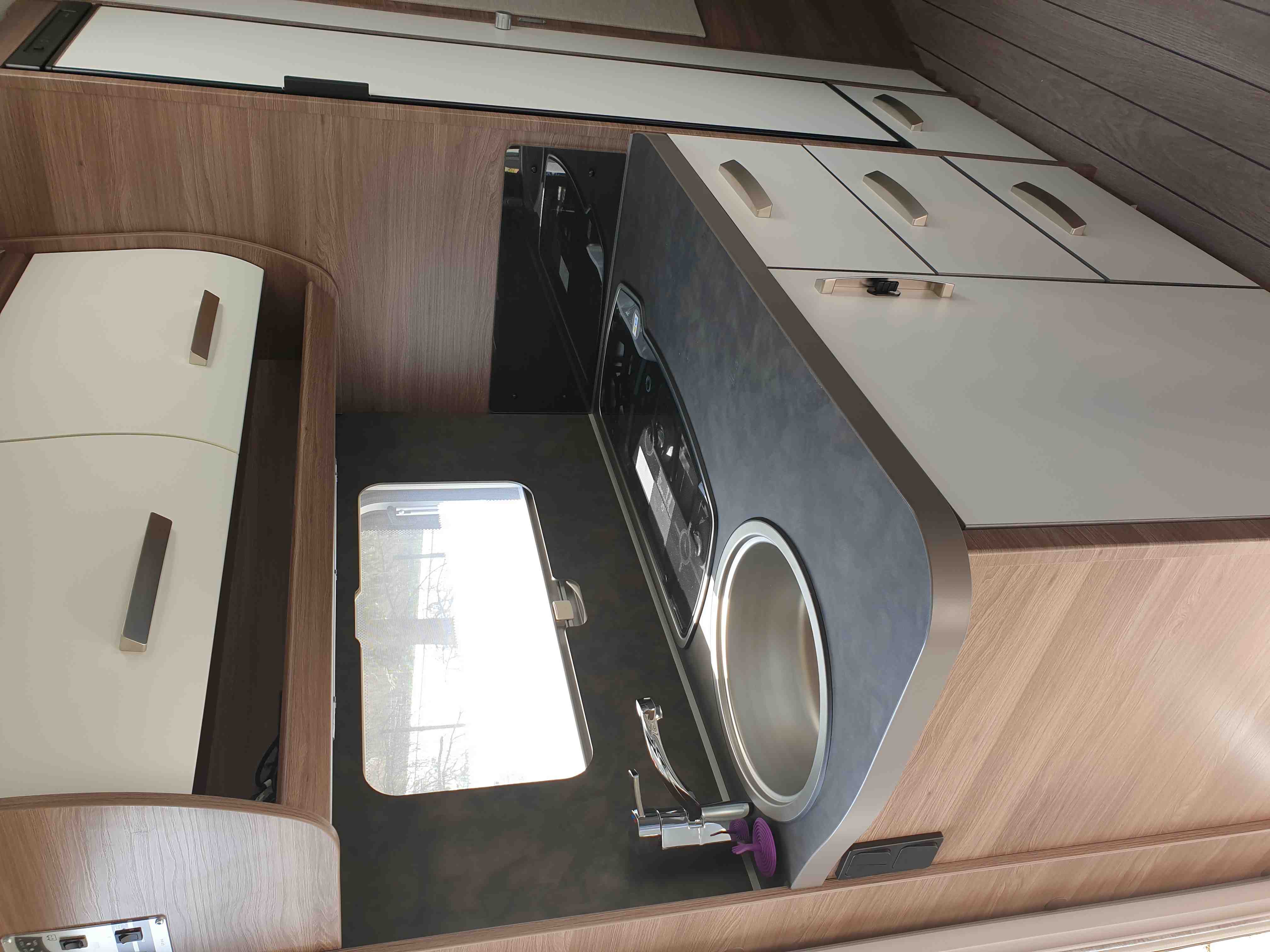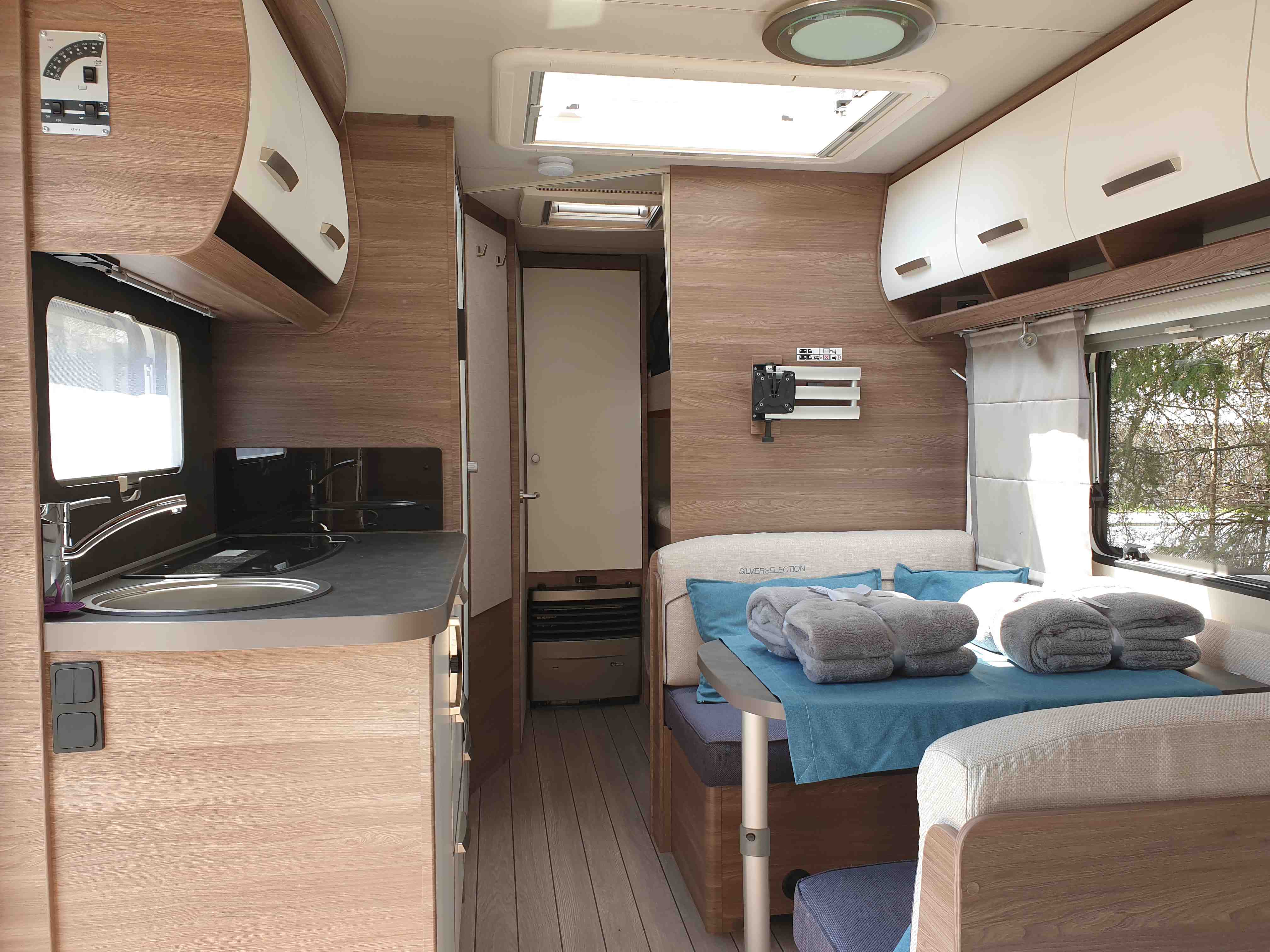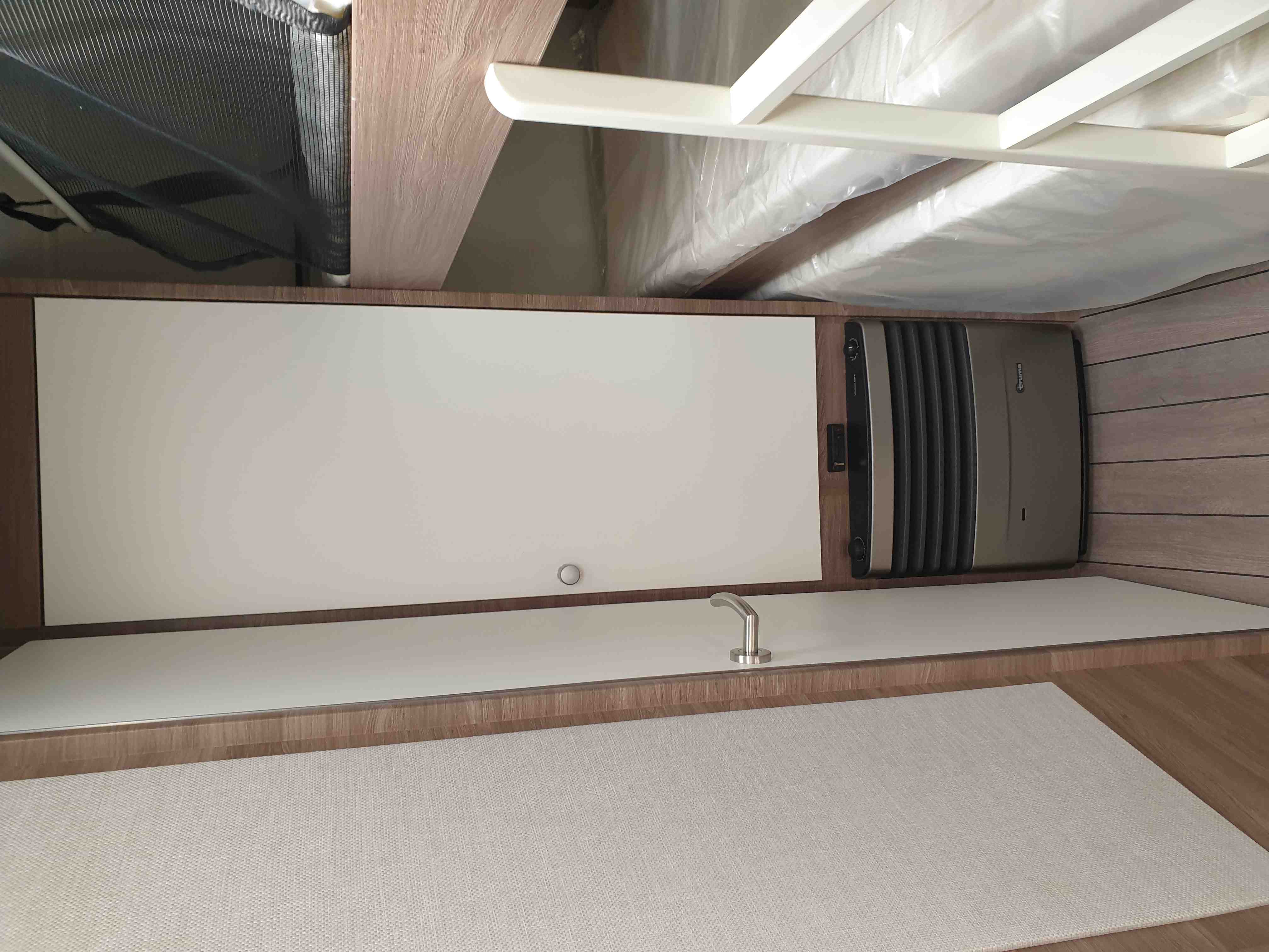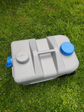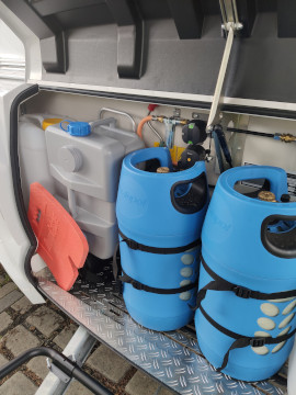 Nádrž na vodu 45l s přípojkou z městkého řádu (v lépe vybavených kempech se nemusíte starat o doplňování vody)