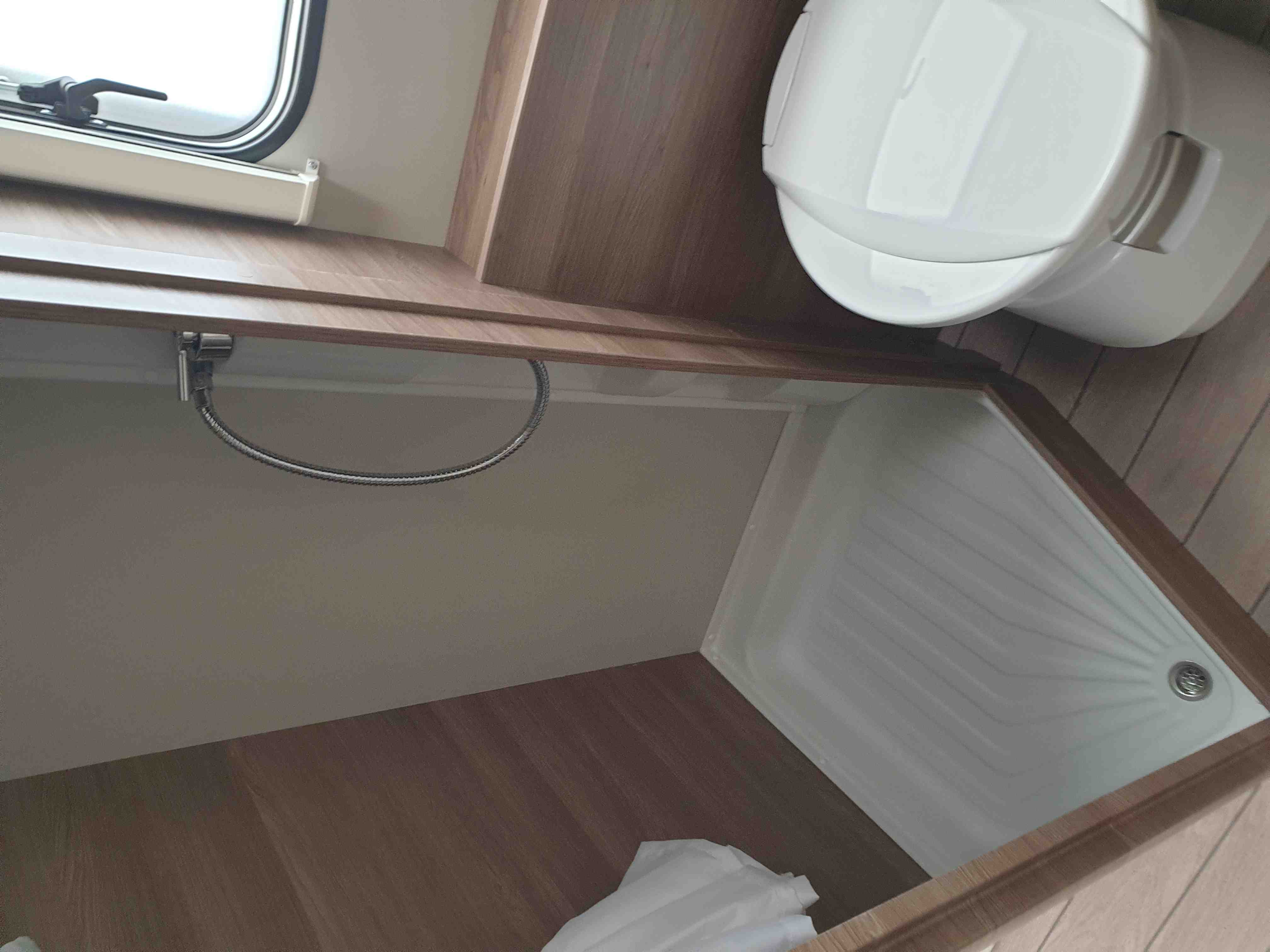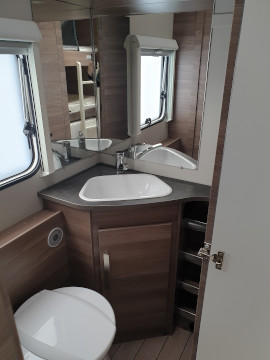 Chemické WC, umyvadlo, zrcadlo i úložný prostor na hygienu